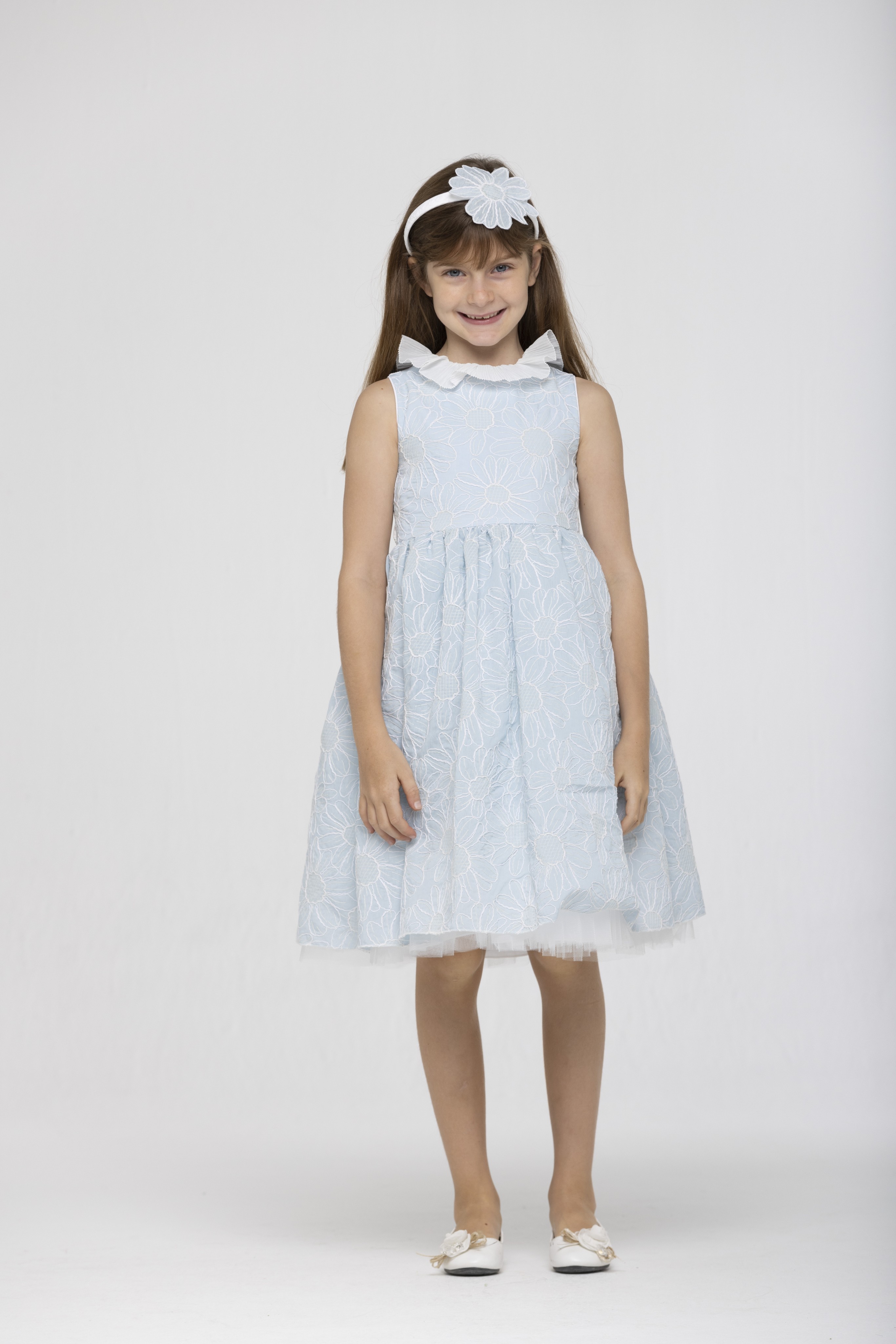 Beautiful dress of Speranza is made for your beautiful girl. A blue linen embroidery sleeveless w/collar dress.
