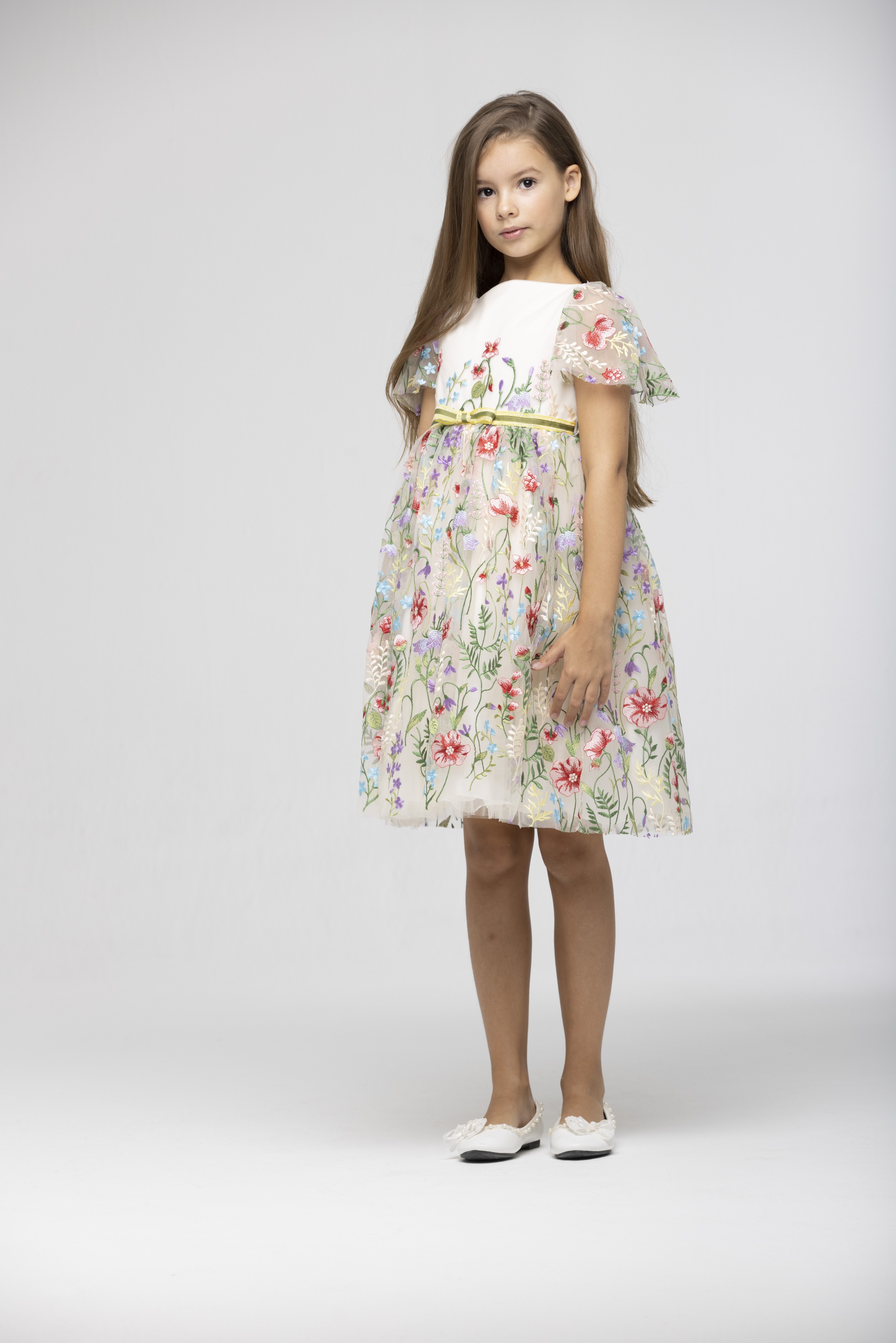 A gorgeous floral embroidery dress by Speranza. Fully lined with cotton lining and with a zip fastening at the back.