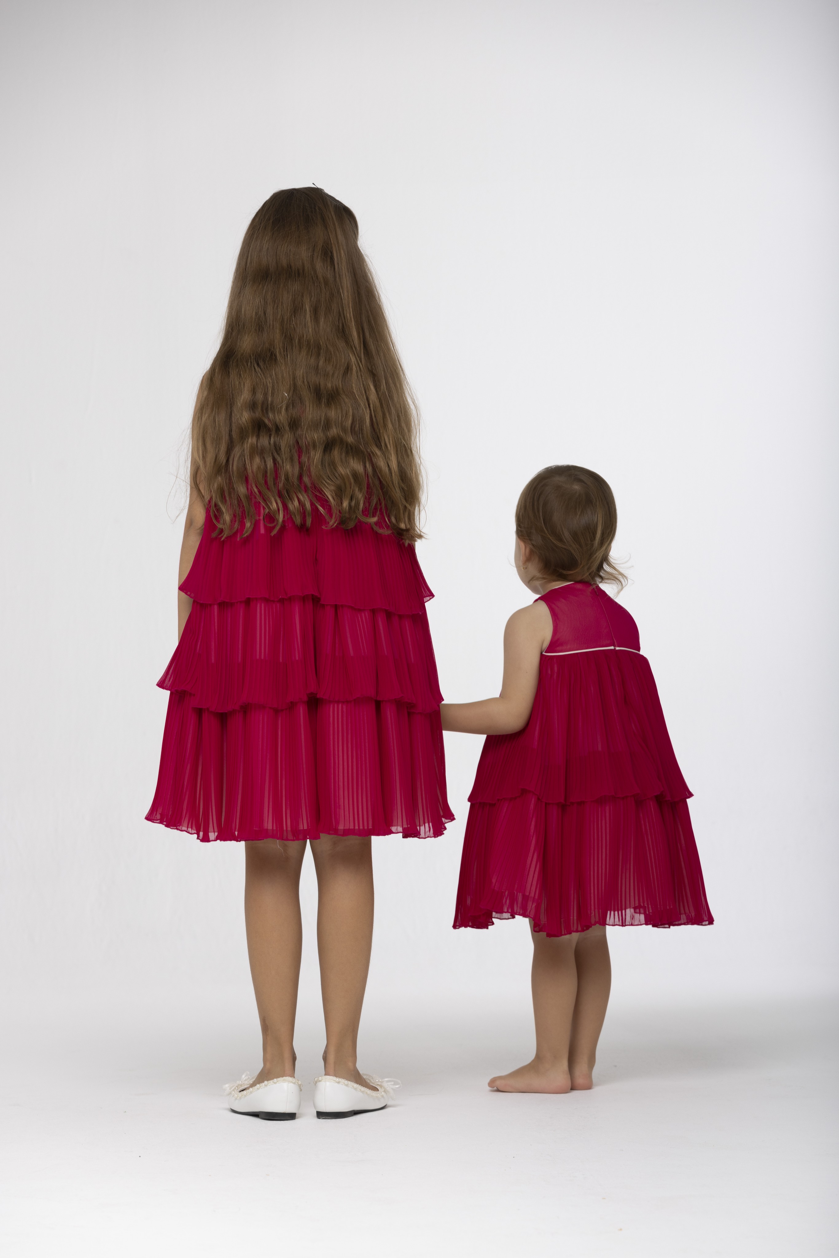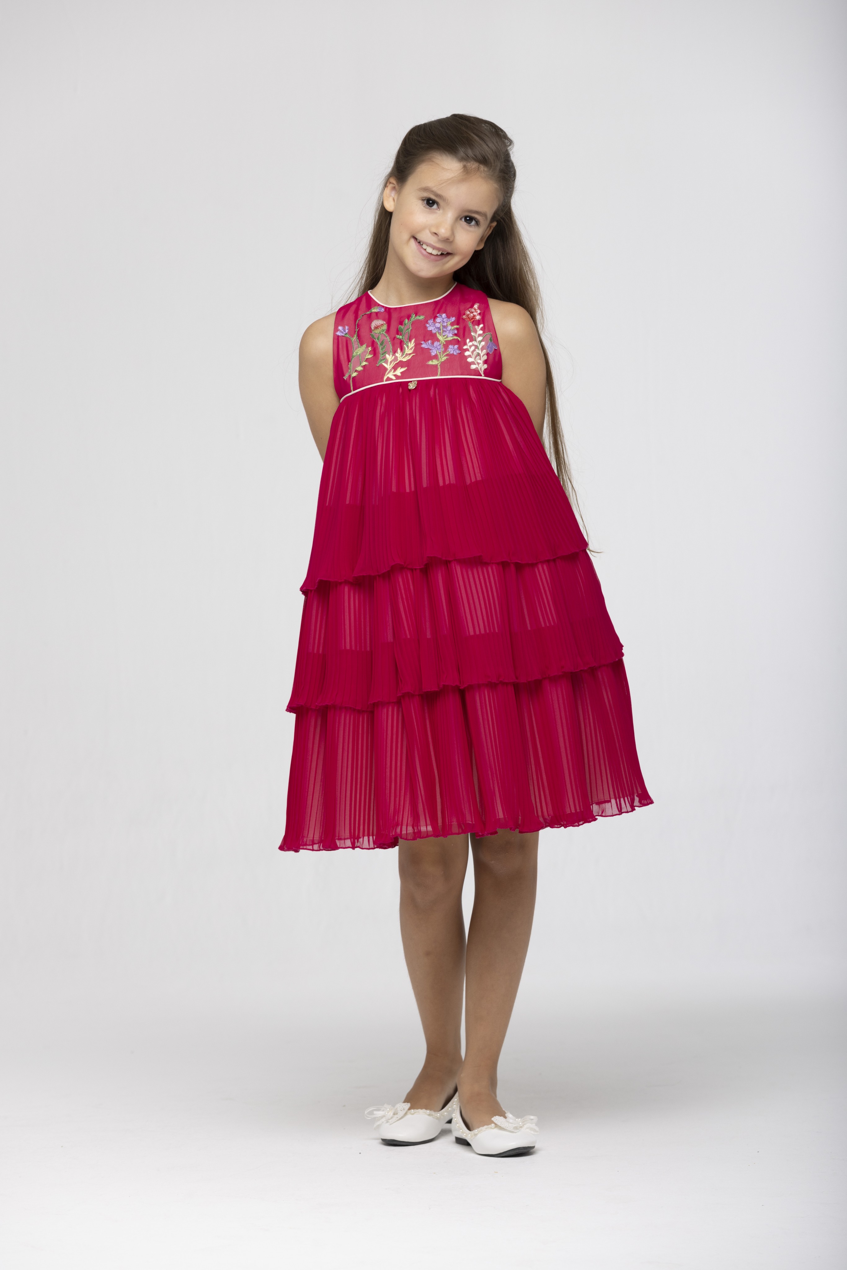Speranza girls layered chiffon fuchsia pink dress. Fully lined with cotton lining and with a zip fastening at the back.