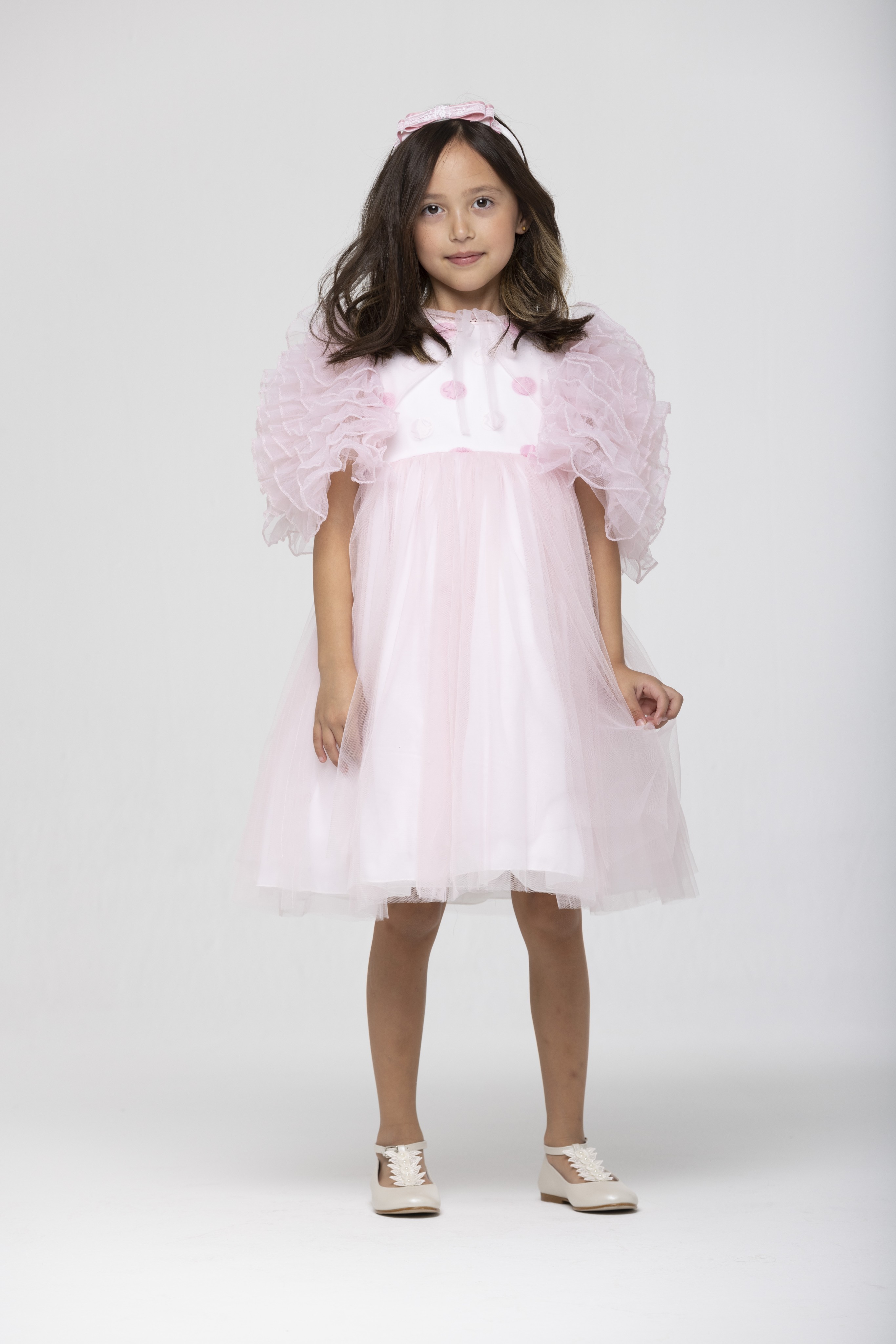 A pretty pink dress for girls by Speranza. Made in layers of soft tulle with bolero. The dress has comfortable cotton lining and a zip fastening on the back.