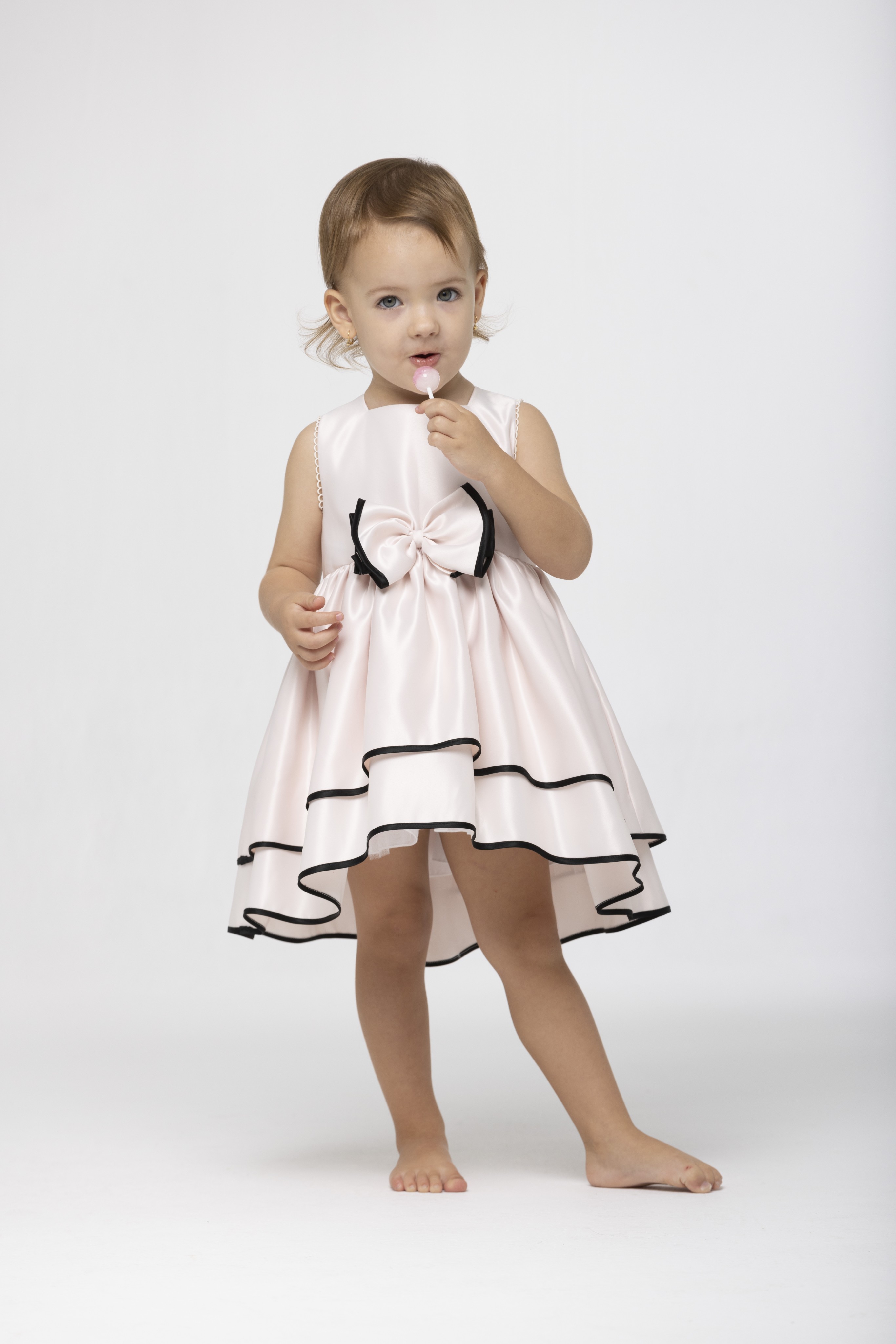 Pink sleeveless stunning in any occasion dress by Speranza. Made in satin fabric and it has big bow on the middle.