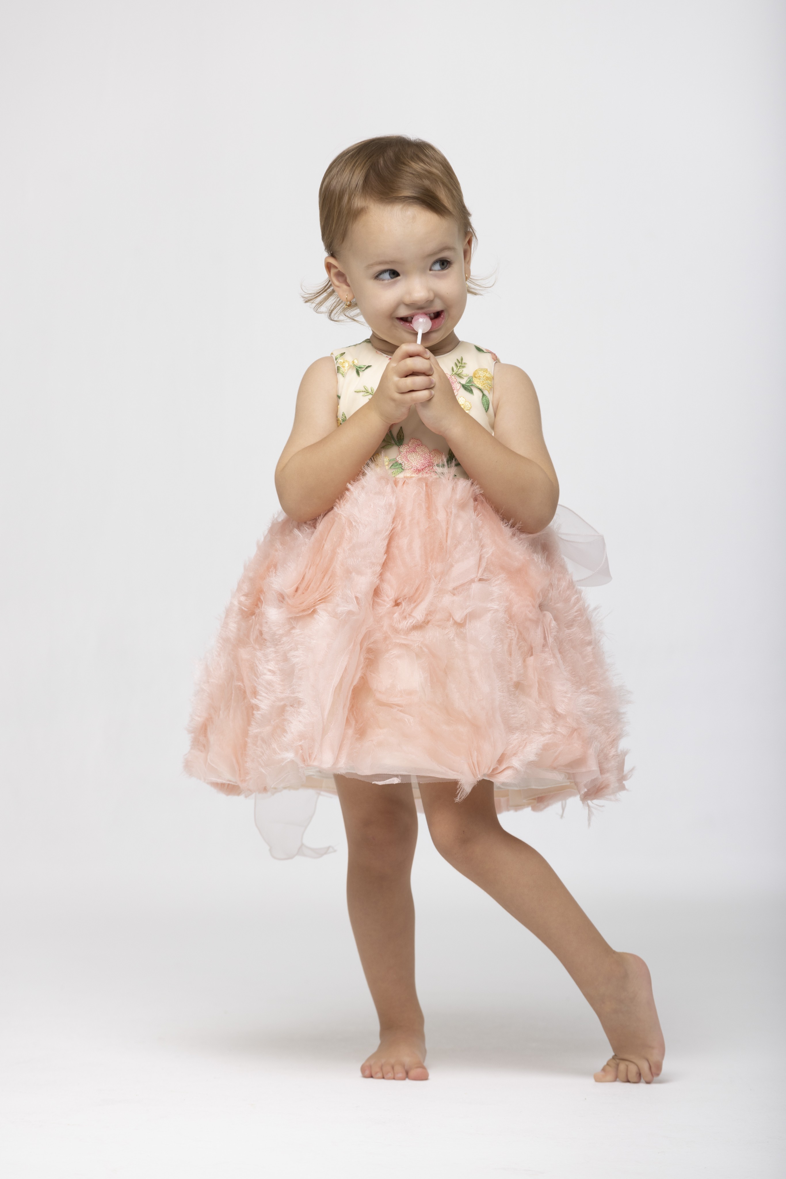 Girls stunning in any occasion dress in pink, by Speranza. Made in embroidery lace and it has speranza gold metal logo.