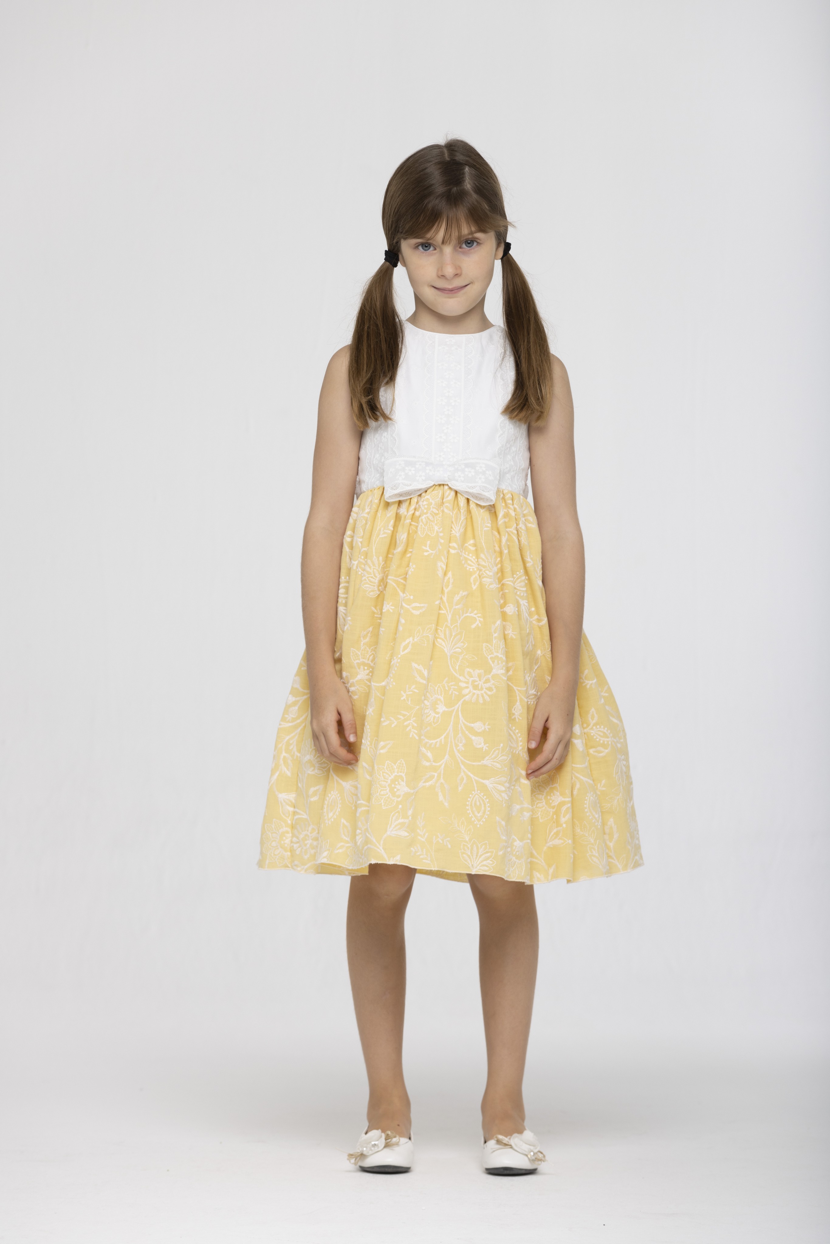 This lovely Speranza girl dress is made of cotton fabric. The dress has big bow on center and sleeveless to make your girl comfortable. Fully lined with cotton lining and with a zip fastening at the back.
