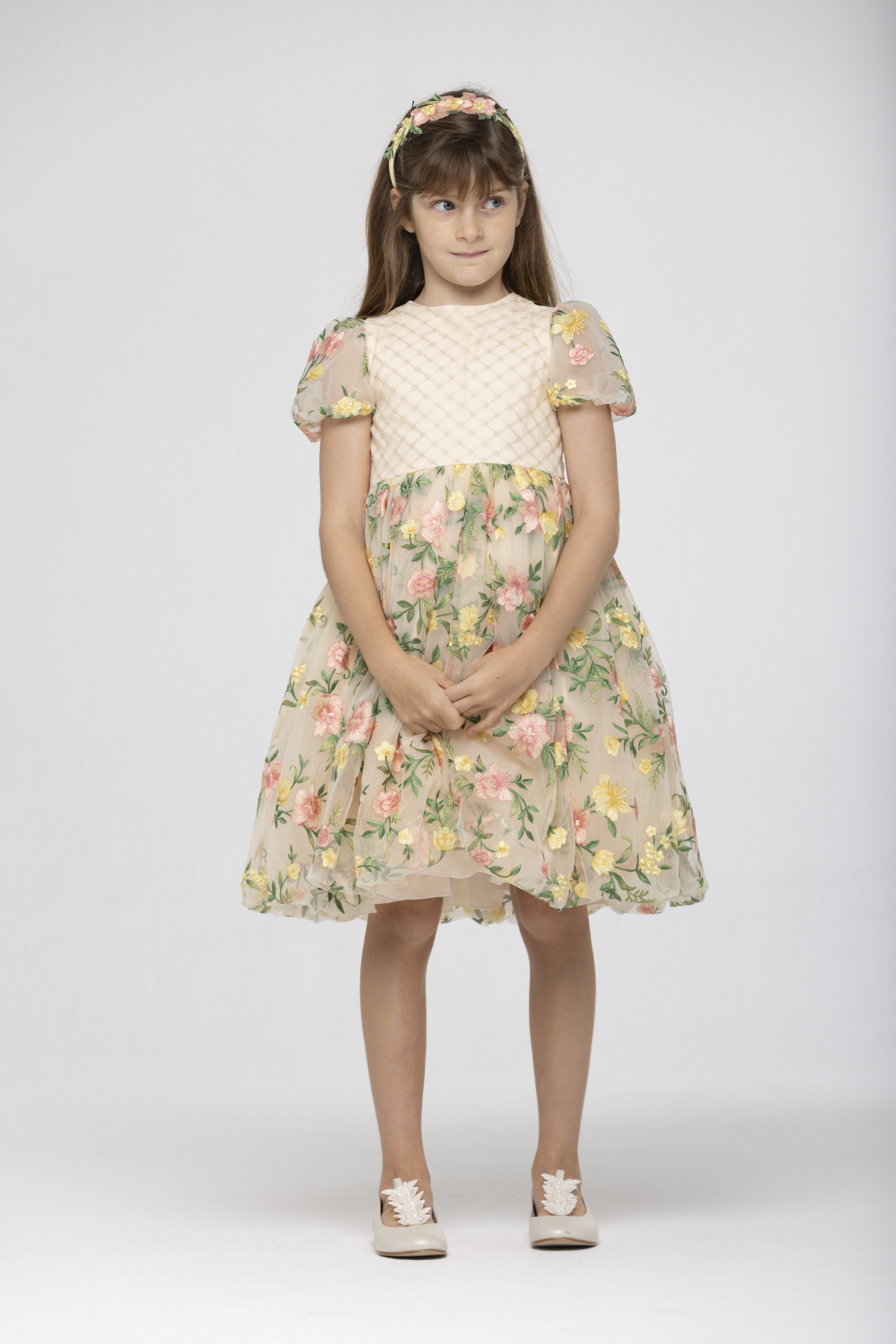 This embroidery yellow dress of Speranza is made for a very special occasion. It is made of very soft tulle.